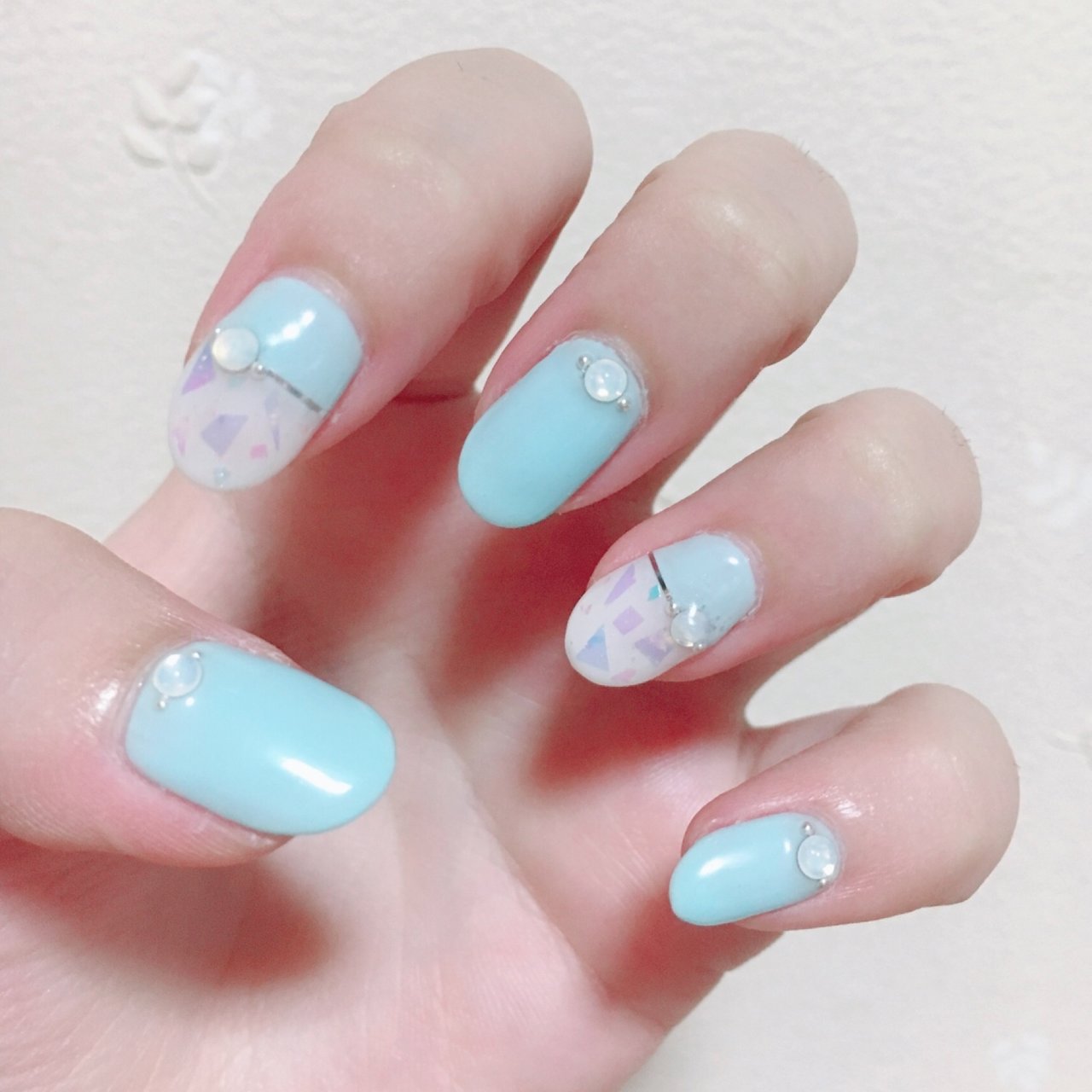 千葉恵里 Rin Nail Rin さんで ネイルしてきました 夏っぽく水色にしたよ 太陽に当たるとめっちゃキラキラするのが 可愛すぎる Moe Zine
